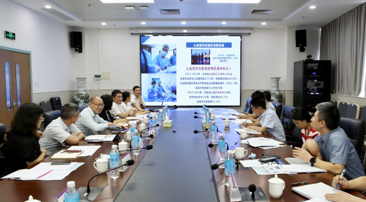 市卫生健康局一行现场参观调研了医院门诊、ICU等,并听取了医院基本概况、学科建设、业务发展等方面的工作汇报。