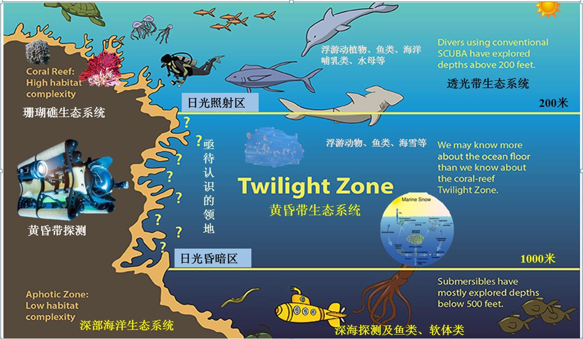 “黄昏带”覆盖海水深度200-1000米的范围,是海洋生产力最活跃、最重要的区域带,具有超高的生物多样性和丰富的鱼类资源。多国科学家于2021年初开始实施JETZON计划。