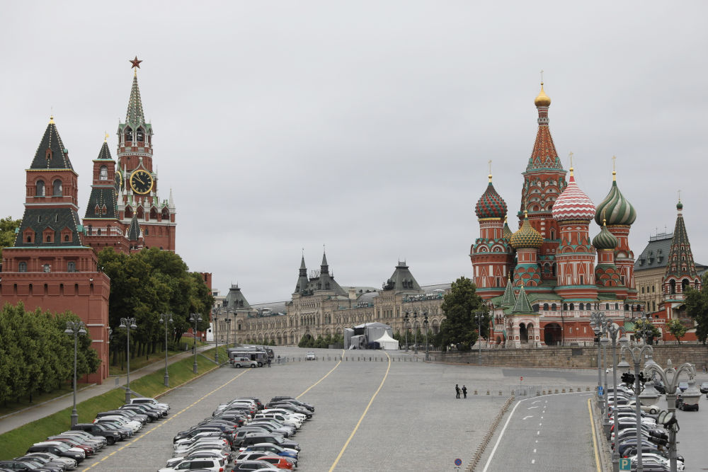 记者赶到莫斯科红场时,红场周围已经围起栏杆,有少量警车和警察现场巡逻,不远处有用于封路的道路工程车辆聚集。