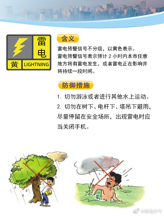 注意防御!香洲区、高新区雷电预警信号现正生效