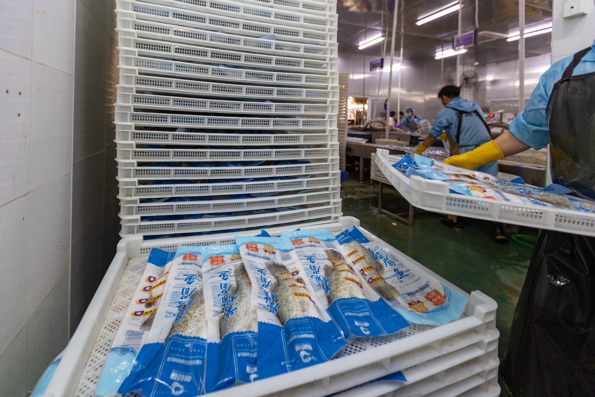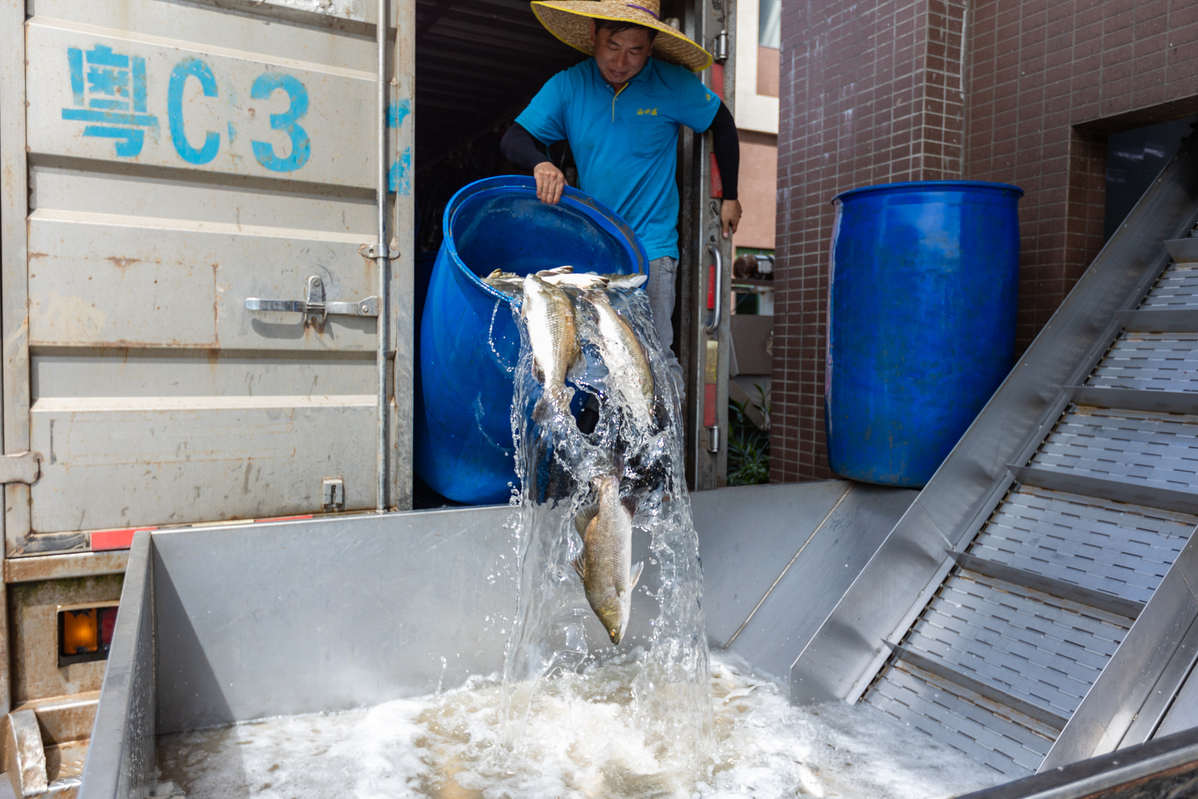 “来鱼了!来鱼了!”6月21日下午,在斗门区预制菜产业园内,珠海市粤越强农业科技有限公司(以下简称“粤越强”)生产车间门口,又一批鲜鱼到货了。