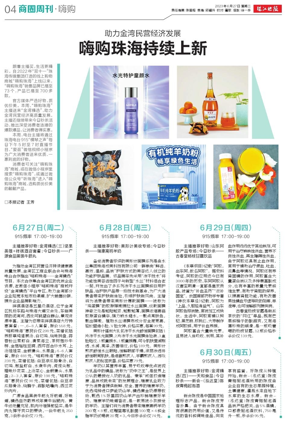 官方媒体严选好物,质优价美。本周,“嗨购珠海”主播送来“金湾精选”,助力金湾民营经济高质量发展。主播还继续带来今日秒杀活动,推出深受消费者追捧的爆款爆品,让消费者得实惠。>>详细内容戳这里