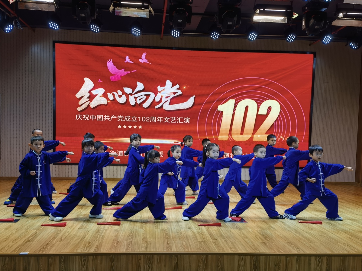 此次文艺汇演活动参加演出的演员及小朋友们均为义演,分别来自社区的艺术团、幼儿园,他们以诗歌朗诵、舞蹈、功夫等形式表达对党和祖国的满腔热爱和深切祝福。