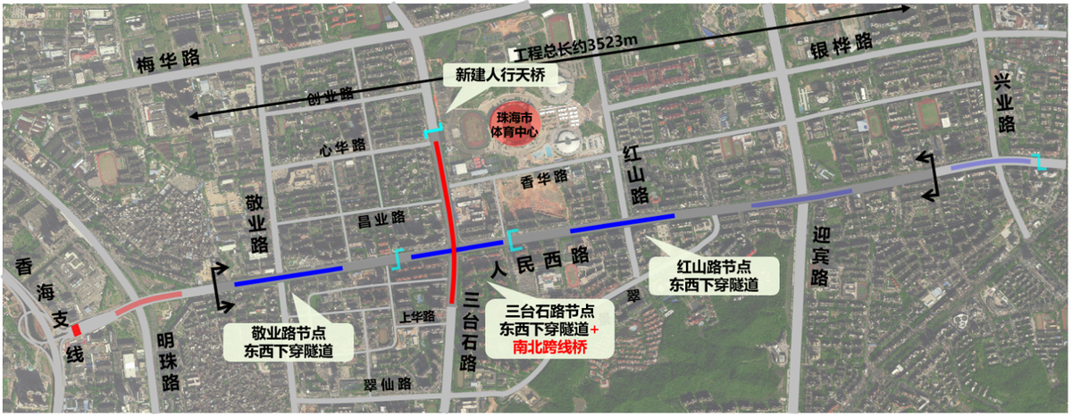 据市公共工程建设中心建设获悉,人民西路快速化提升工程西接人民路交明珠路跨线桥工程(该项目目前已开工),东接银桦隧道工程,全长约3.5公里,为城市主干路。建设内容主要包括敬业路、三台石路、红山路三个节点新建主线四车道下穿隧道,三台石路节点同步新建一座南北向跨线桥,体育中心西门处新建一座人行天桥。