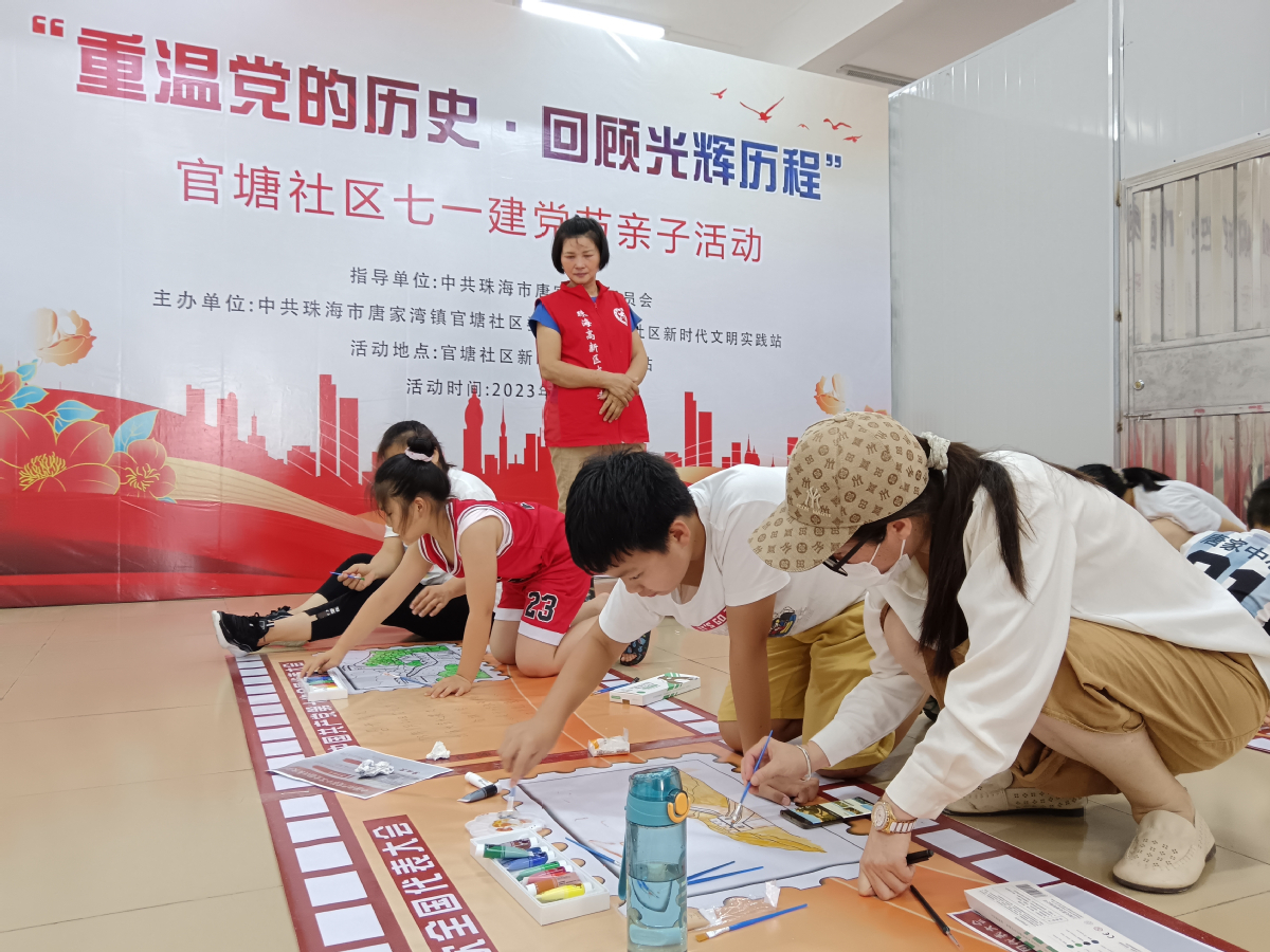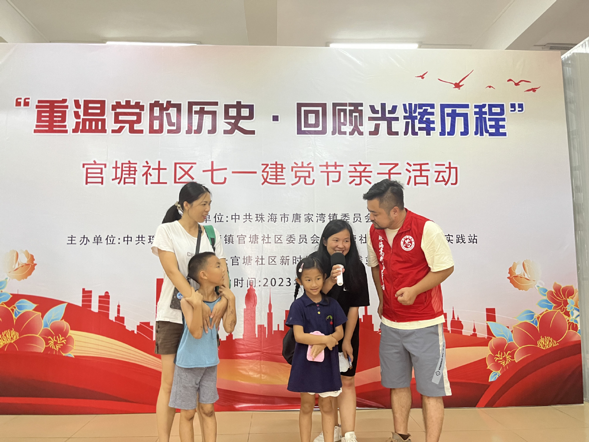 为丰富社区家庭的文化生活,进一步激发社区家庭的爱党、爱国热情,7月1日,在“七一”建党节之际,唐家湾镇官塘社区党委开展了“重温党的历史·回顾光辉历程”“七一”建党节亲子活动,重温党的奋斗历程,讴歌党的丰功伟绩,传承爱国爱党红色基因。