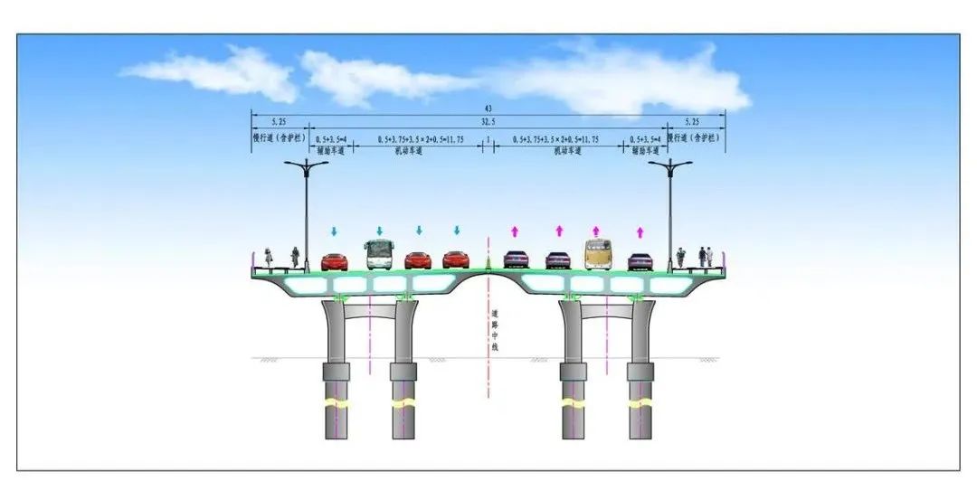 公告显示,香海北路(机场北快线至江珠高速段)白蕉大桥工程起点接现状尖峰前路,经西堤路、黄杨河、东堤路,辅路终点接虹桥二路,形成平面交叉口,采用连续高架桥梁形式敷设,全长1.54公里。主线道路等级为城市快速路,辅路为城市次干路。其中,主线高架桥标准段为双向六车道;白蕉大桥为双向八车道,设计速度60公里/小时;黄杨河东侧辅路采用双向四车道,设计速度40公里/小时;白蕉大桥两侧的两对上下匝道采用单向两车道,设计速度40公里/小时。