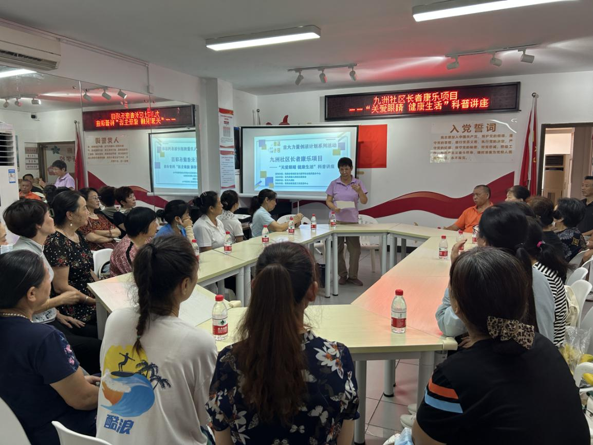 近日,由吉大街道九洲社区“活力九洲”志愿服务队开展的“关爱眼睛 健康生活”科普讲座在九洲社区新时代文明实践站开展,20余名居民参与其中。