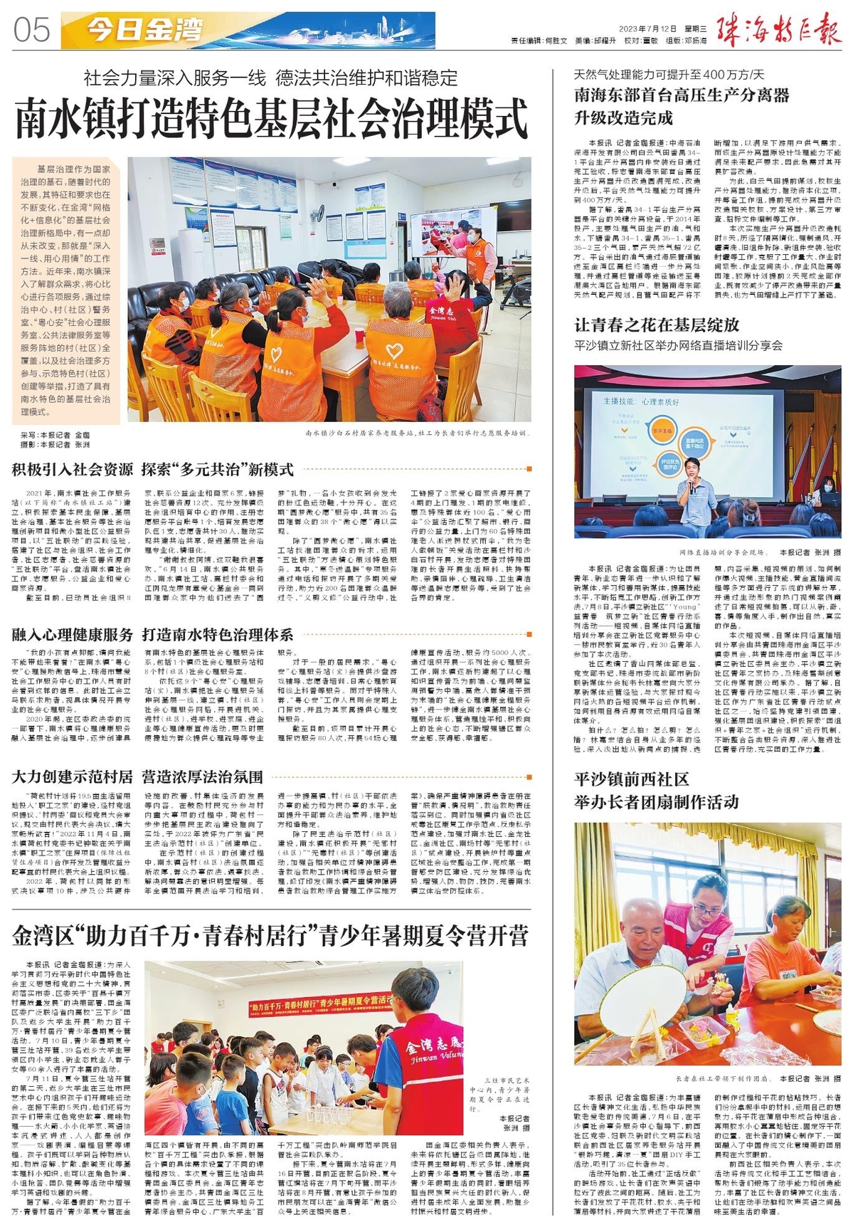 基层治理作为国家治理的基石,随着时代的发展,其特征和要求也在不断变化,在金湾“网格化+信息化”的基层社会治理新格局中,有一点却从未改变,那就是“深入一线、用心用情”的工作方法。近年来,南水镇深入了解群众需求,将心比心进行各项服务,通过综治中心、村(社区)警务室、“粤心安”社会心理服务室、公共法律服务室等服务阵地的村(社区)全覆盖,以及社会治理多方参与、示范特色村(社区)创建等举措,打造了具有南水特色的基层社会治理模式。