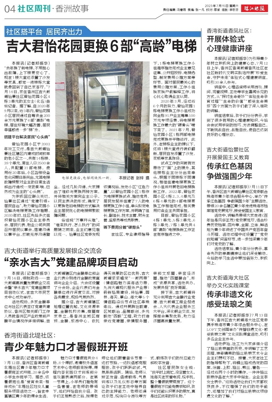 “去年换了新电梯,不用担心出故障,上下楼更安心了。现在1楼大堂还添置了沙发等家具,感觉一进楼栋大堂就像回到了自己家客厅。”7月14日,家住香洲区吉大街道怡景社区君怡花园小区4栋3单元的王女士(化名)告诉记者。据了解,自2020年9月以来,近3年内,君怡花园小区居民通过自筹资金200余万元更换了6部“高龄”电梯,居住环境大幅改善,居民幸福感进一步“梯”升。》》详细内容戳这里