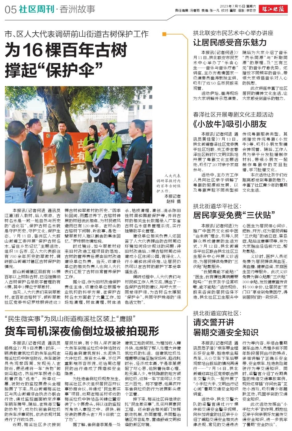 前人栽树,后人乘凉。古树名木是一城一地自然与历史的“活化石”,保护古树名木就是守护历史、守护文化、保护生态。7月11日,香洲区人大前山街道工委开展“保护古树名木,留住乡愁记忆”主题活动,组织18名市、区人大代表前往有700余年历史的翠微村,调研前山街道对辖区古树保护的情况。》》详细内容戳这里