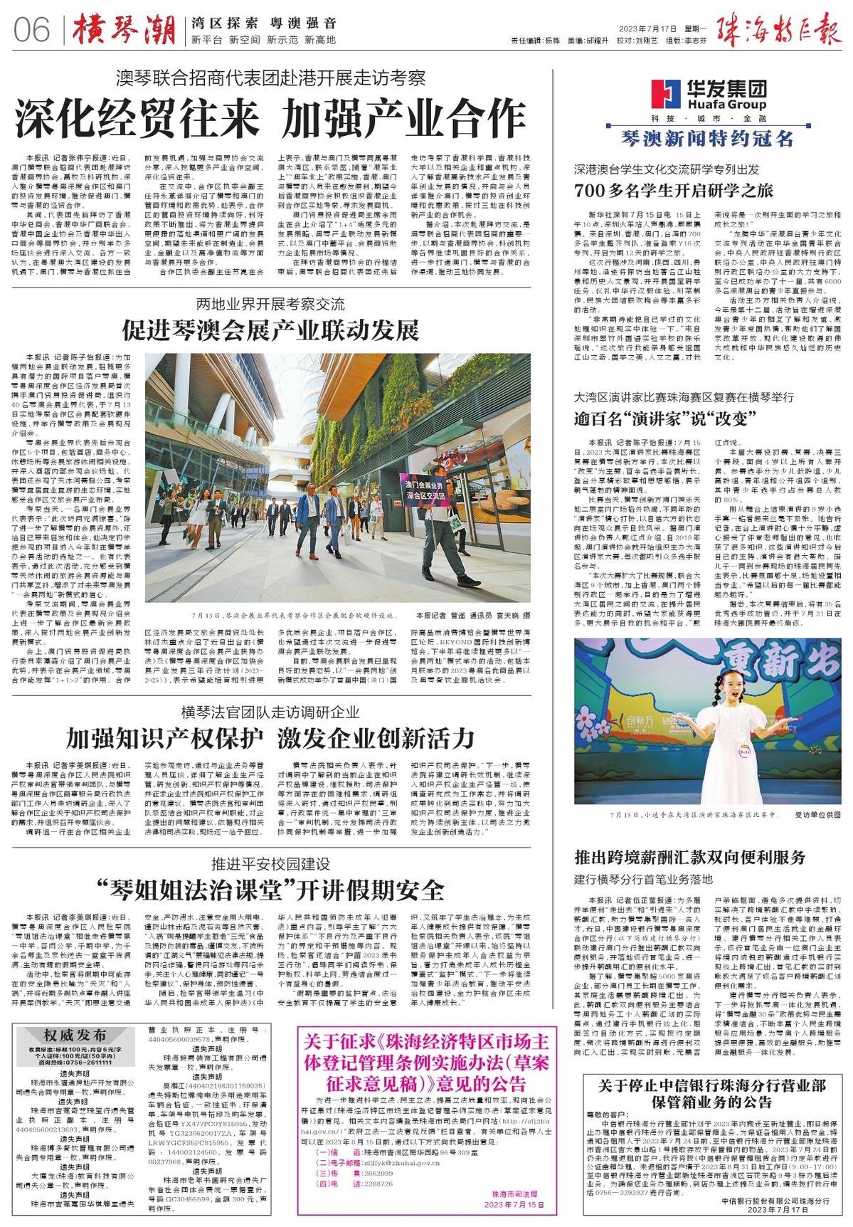 合作区执委会副主任苏崑在会上表示,香港与澳门及横琴同属粤港澳大湾区,联系紧密,随着“港车北上”“澳车北上”政策实施,香港、澳门与横琴的人员来往愈发便利,期望今后香港商界协会积极组织香港企业到合作区实地考察,寻求发展商机。