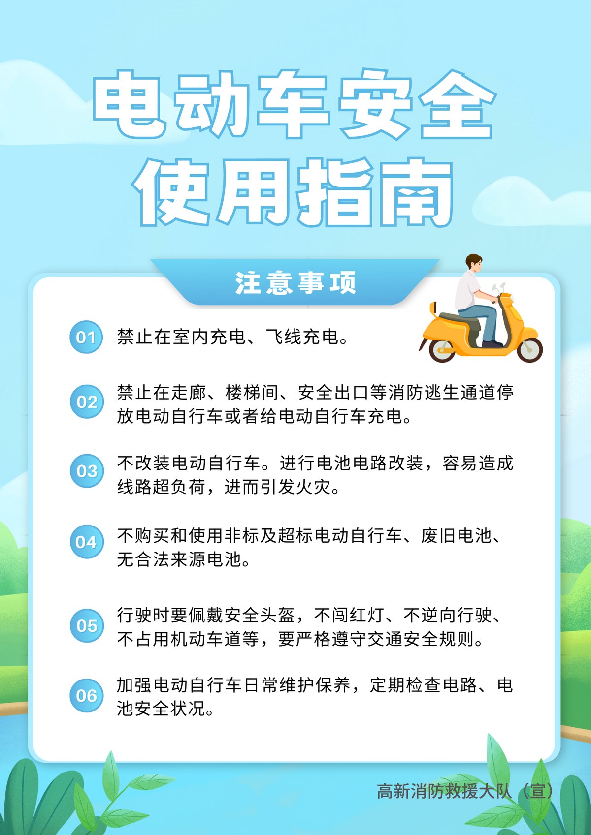 安全无小事,每个人都是自身安全的“第一责任人”。目前,随着电动自行车保有量的增长,入室充电、电池短路、非法改装等乱象引发的火灾事故和交通事故频发,给人民群众生命财产造成重大损失,给社会的安全管理带来巨大压力。安全使用电动自行车,坚决杜绝违规充电,是我们每位居民都应自觉履行的义务。