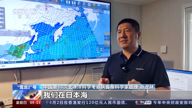 中国第13次北冰洋科学考察队首席科学家助理 孙虎林:从目前来看的话,我们在日本海经历一次气旋引起的大风浪过程,从日本海之后,一直到白令海峡的大概七八天时间都没有大风浪过程影响。总体上来看,整体的风浪情况,都是比较理想的。