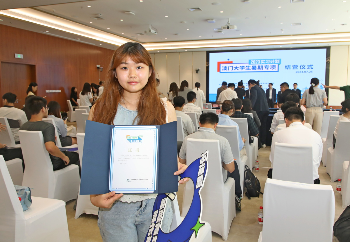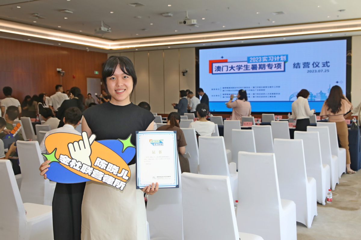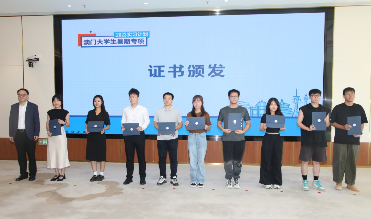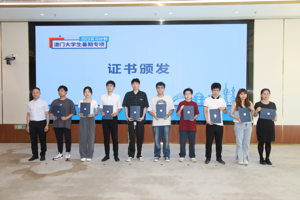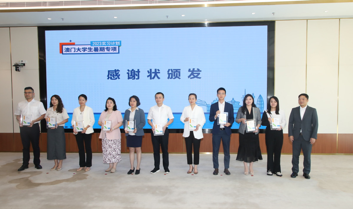 7月25日下午,“2023澳门大学生暑期专项实习计划”结营仪式在横琴国际商务中心举行,首批33名参与实习计划并结营的澳门在校大学生获颁实习证书,22个实习企业代表获颁感谢状。
