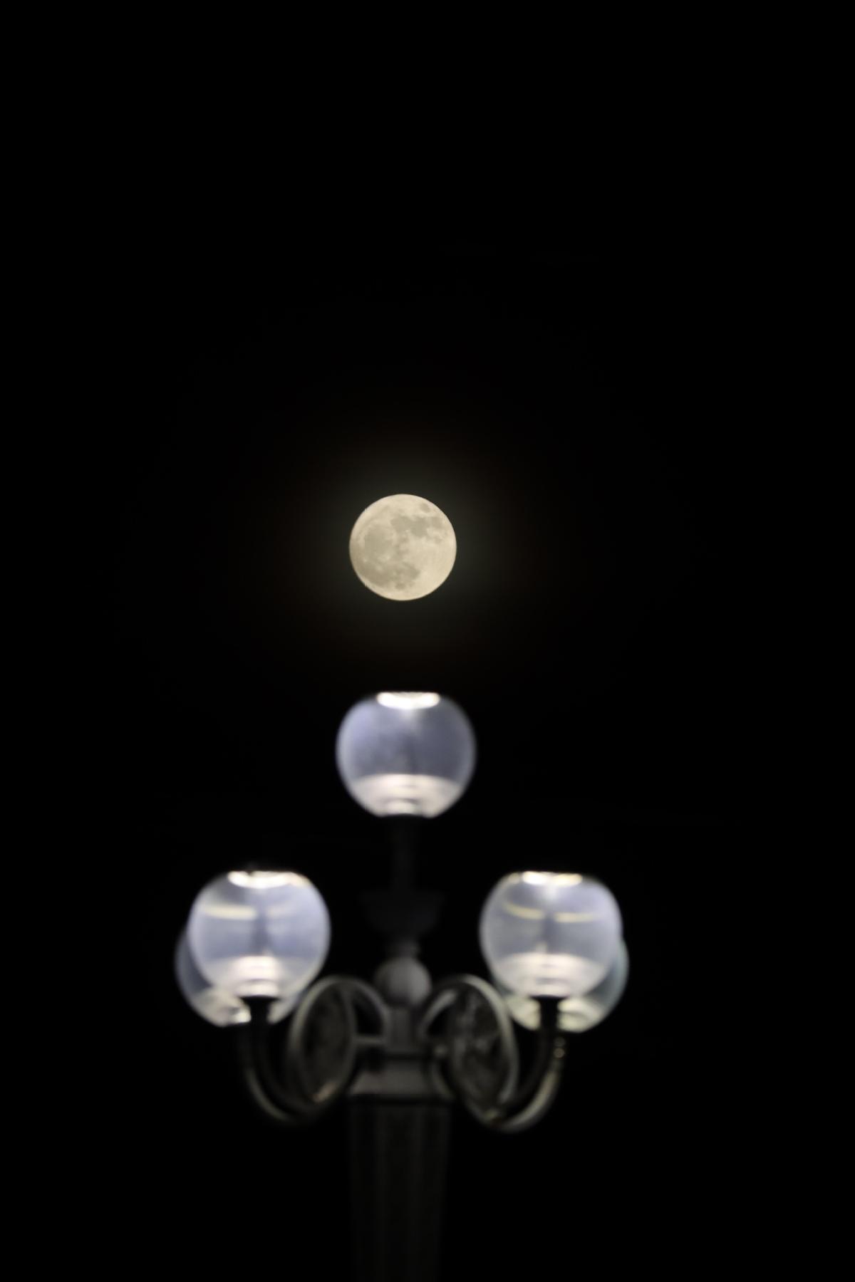 海燕桥上的路灯与天空的圆月相映成趣。珠海传媒集团 钟凡/摄