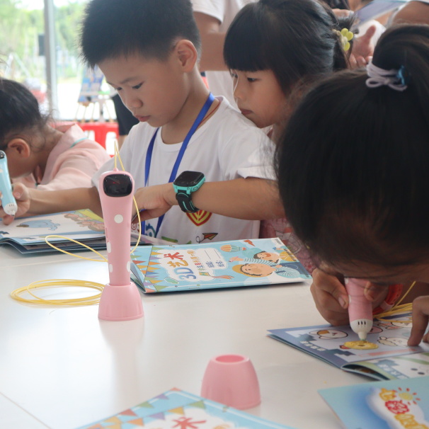 开营仪式结束后,孩子们来到由珠海鑫誉 STEM 科创教育团队支持的科普与实践相结合的科技游园区,这里有机器人编程、3D打印、3D笔创意制作、无人机赛道飞行、航模手工制作、物理与化学类等科技展台和实验实践体验,通过有趣、好玩的科普体验活动,让孩子们创游在科普知识的海洋中,拥抱多元化的世界,感受到科技文化的魅力。