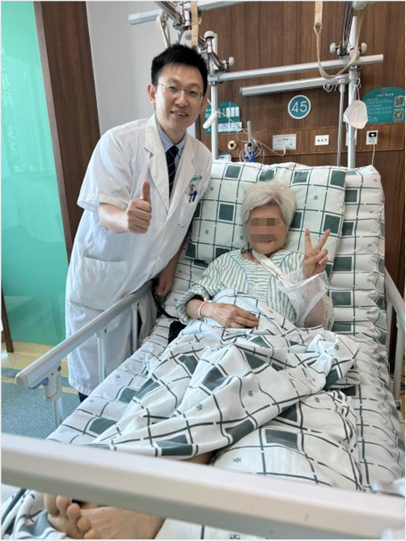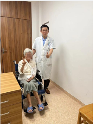 老人家入院后,张梅刃主任团队经过仔细、周密的术前讨论,为患者行腰麻下股骨颈骨折闭合复位机器人辅助下微创空心螺钉内固定术,在患者入院24小时内,顺利完成了股骨颈骨折手术治疗。手术后,老人家髋部的疼痛感逐渐消失,恢复良好。