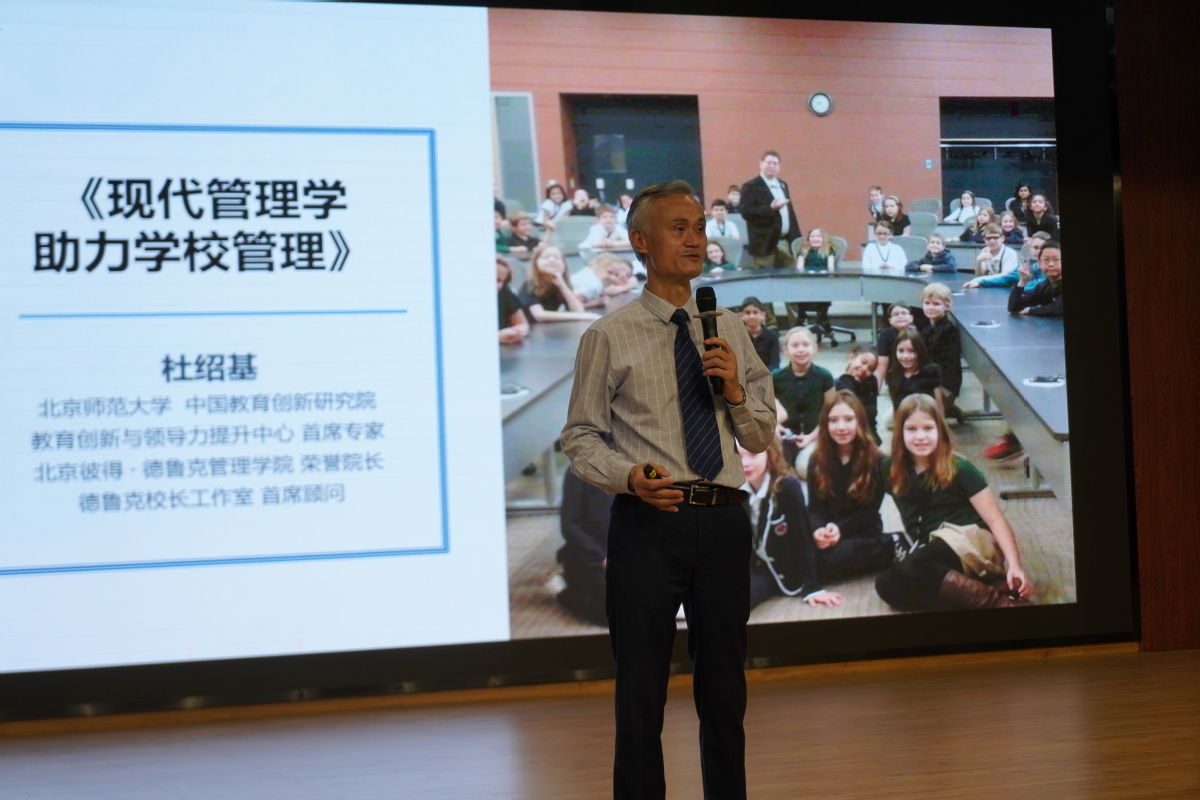 杜先生从“认识现代管理学”“冰山下的领导力”“激励的奥秘”“战略规划蓝图”四个方面深入浅出地阐述了“现代管理学如何助力学校管理”。杜先生结合国内外的事例或故事,穿插有趣的内容视频,引导学员们深刻理解“领导力”的内涵,认真思考“管理”的意义,深度挖掘激励的奥秘,大胆探索学校管理的理念,从“管理者”的角度谈有效管理,从“被管理者”的角度谈实现价值。整个讲座不仅有“道”的指引,更有“术”的实操,内容精彩纷呈,过程幽默有趣,赢得在座学员们阵阵掌声。