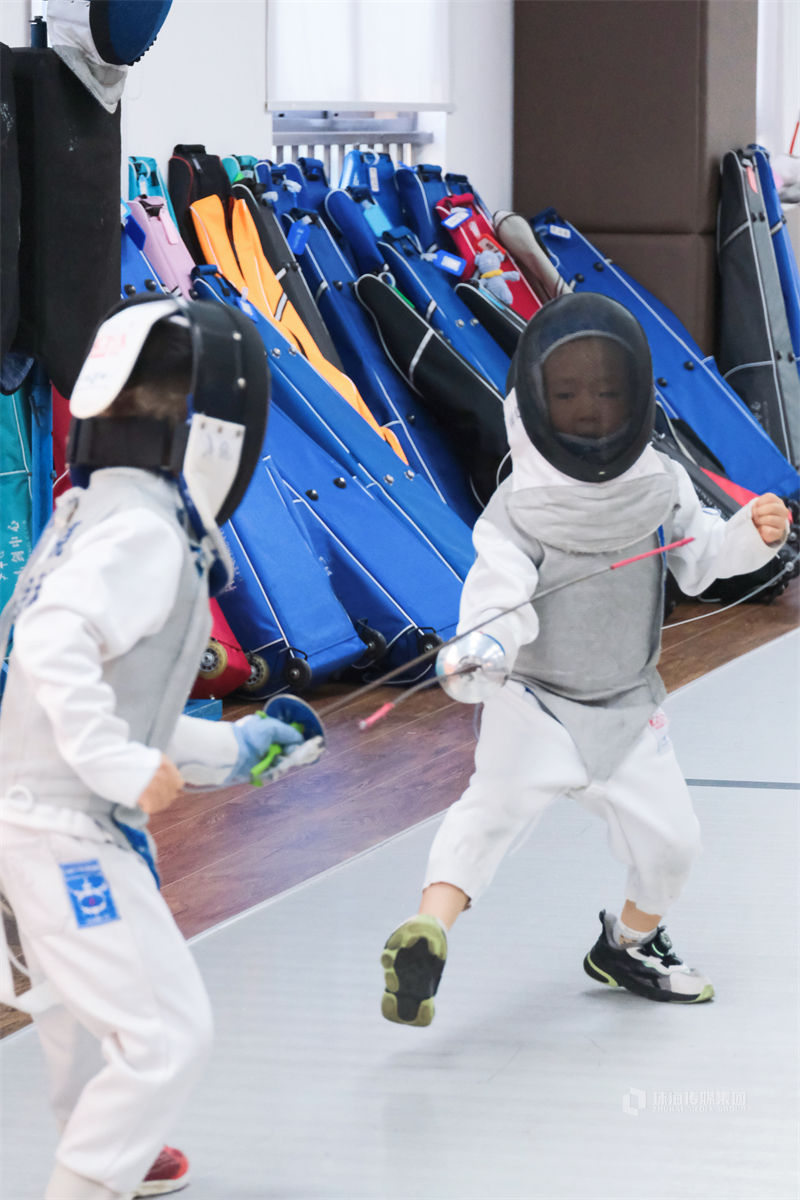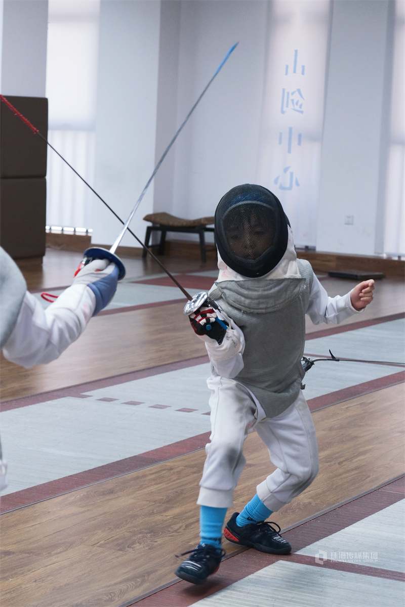 在拱北一家击剑馆,有这么一群小朋友,身着一袭帅气白衣,一副神秘护面,一柄修长的铁剑,笔直的身形瞬间做出劈、刺的动作,冷静而优雅。