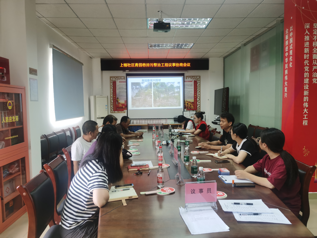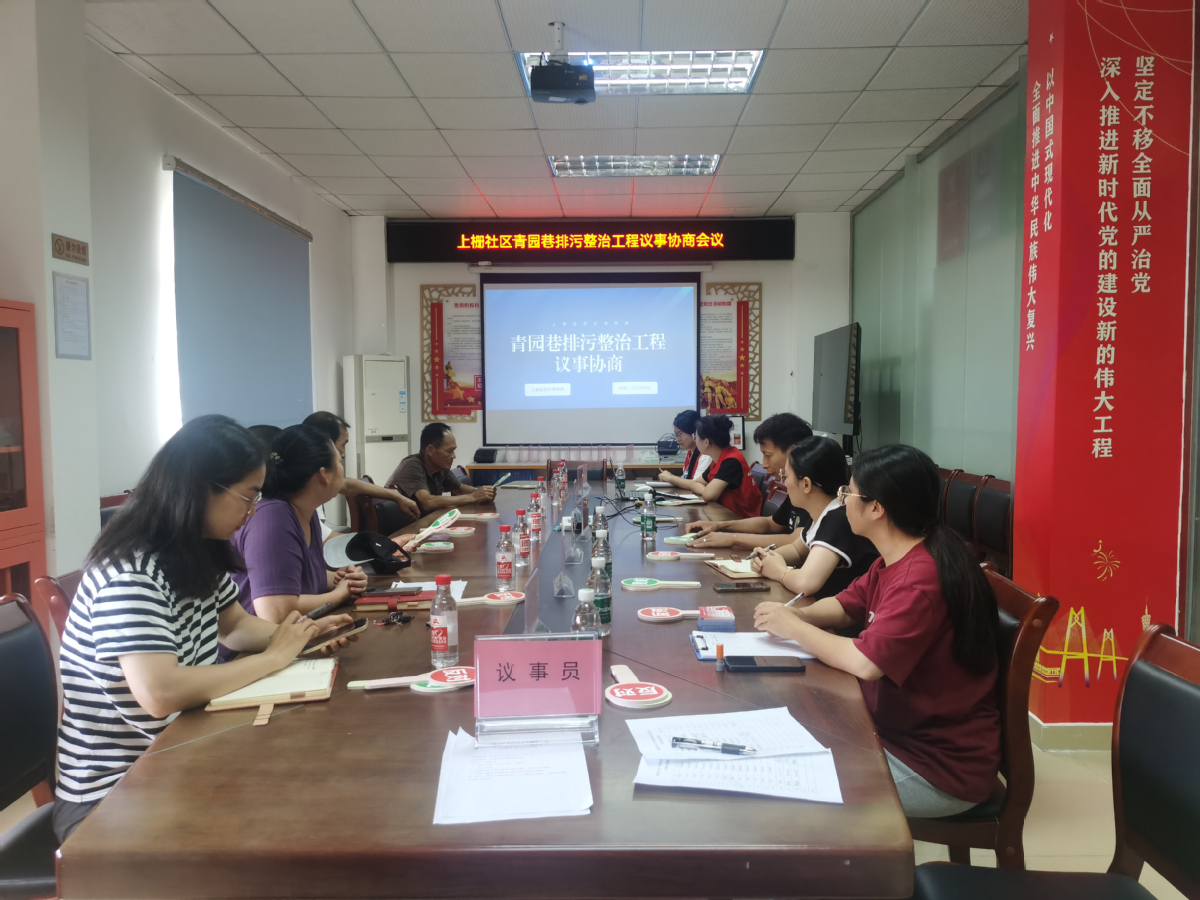项目组成员在收集居民意见后,迅速向上栅社区提出组织附近居民对青园巷排污整治改造的相关事宜进行议事协商。8日下午,10位议事员齐聚一堂,在上栅社区党群服务中心召开青园巷排污渠改造工程项目议事协商会议。在议事的过程中,议事员们畅所欲言,分析研判改造重点,一致认为:青园巷排污不畅主要原因是其中间地段排污管缺失,改造应查漏补缺,及时接通排污管方能有效解决问题。随后,大家就排污渠的工程改造方案、费用具体问题进行热议并最终达成了一致方案。