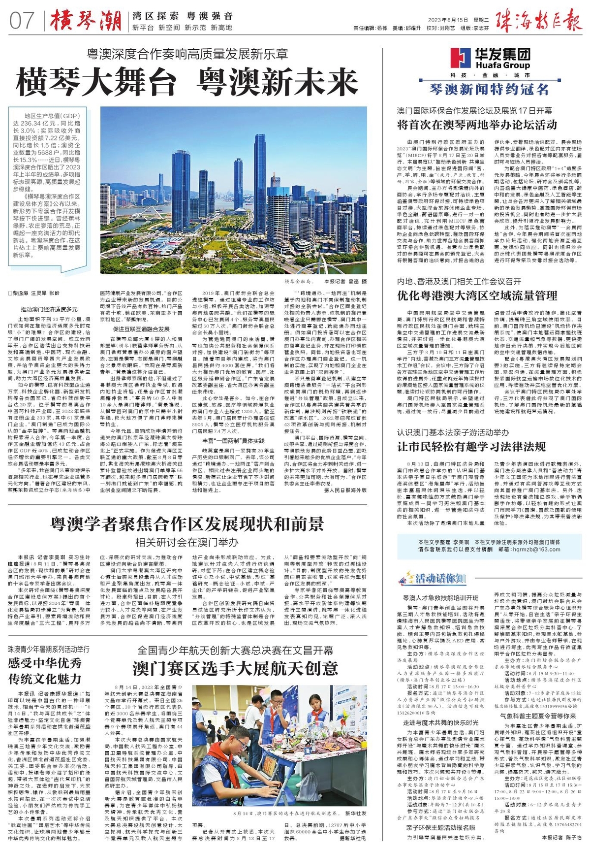 如今的横琴,已有科技型企业逾万家,科技企业孵化器、新型研发机构等各类国家级、省级科技创新平台达20家。位于横琴的粤澳合作中医药科技产业园,至2022年底共有注册企业233家,其中61家是澳门企业,“澳门制造”已成为国际公认的“金字招牌”。琴澳两地金融机构探索深入合作,今年第一季度,合作区金融业增加值达43亿元,占合作区GDP近40%,已成拉动合作区经济增长的重要引擎之一。各类文旅会展活动更是丰富多元。