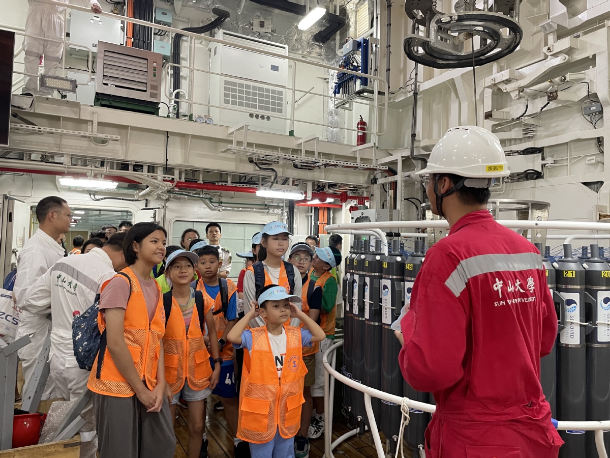 深入了解我国海洋科考发展史、聆听船长的远洋航海故事、近距离观摩国内最先进的海洋科考装备……8月15日,在珠海海事局工作人员的陪同下,这群青少年登上“中山大学”号,体验了一把小小航海家的乐趣,正式开启海事夏令营珠海分营的“航程”。“中山大学”号排水量6880吨,续航力15000海里,具备无限航区全球航行能力,是目前国内设计排水量最大、综合科考性能最强的海洋综合科考实习船。