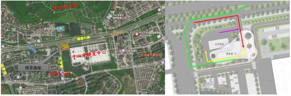 ●项目将中山市博览中心西北角原机动车停车场改造新建为深中跨市公交博览中心公交枢纽;