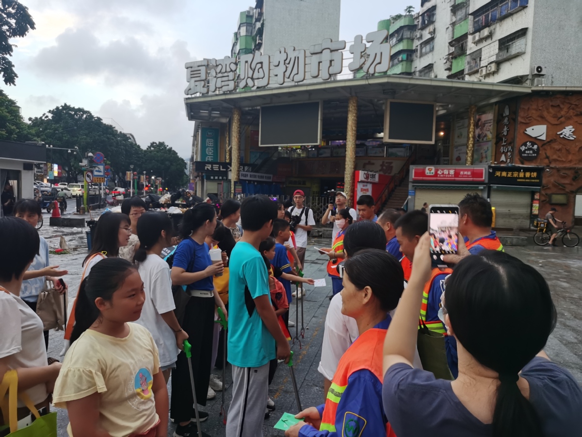 8月20日周日清晨6时,在市妇联、拱北街道办和夏湾社区党委的组织下,一群关爱环卫事业、关心环卫工人的家长及孩子在夏湾购物市场开展一场“小小环卫工”环卫保洁及垃圾分类体验活动。市妇联、市城市管理综合执法局市容环境科、拱北街道城管办、夏湾社区等相关人员参加了本次活动。