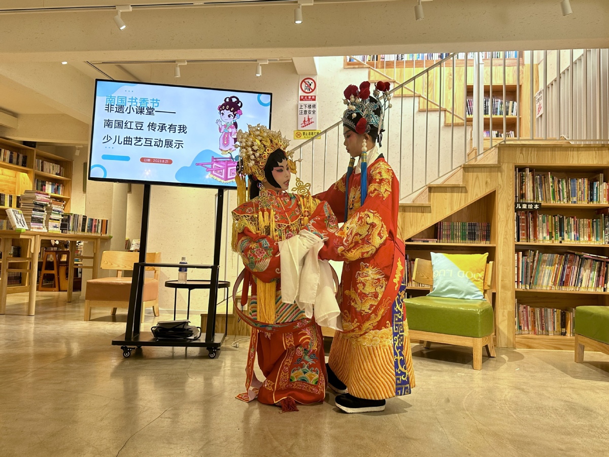 就在上周六(8月19日),周沅沅和郭程锋一同在本届南国书香节珠海分会场的斗门区文旅展区为观众表演粤曲。在他们两个心里,南国书香节不仅仅是读书、看书的节日,也是文化交流的节日。郭程锋说:“在展会现场,我们不仅看到了各式各样的书籍,也看到了很多非遗文化,学习到了很多东西。”