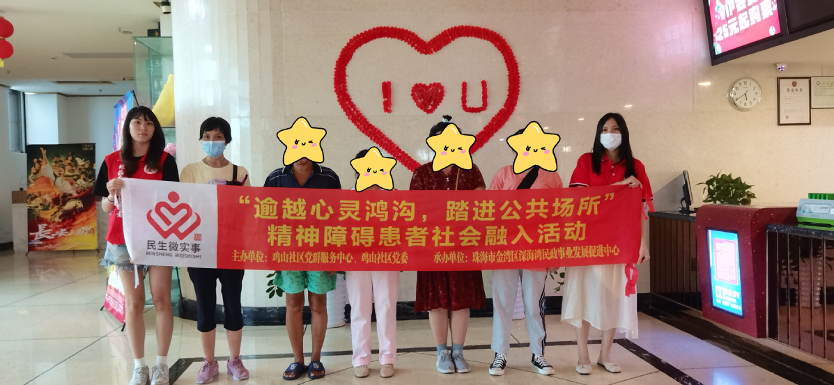 为提高辖区内精神障碍患者的社会适应能力,丰富患者精神文化生活,8月22日,唐家湾镇鸡山社区民生微实事“凤鸣同行,互爱相伴”2023年精神障碍家庭综合支持服务项目,开展了社会融合系列活动之精神障碍患者观影活动。通过组织精神障碍患者观影,引导患者走出家门,积极参与社区活动,同时积极呼吁社会关爱精神障碍患者。