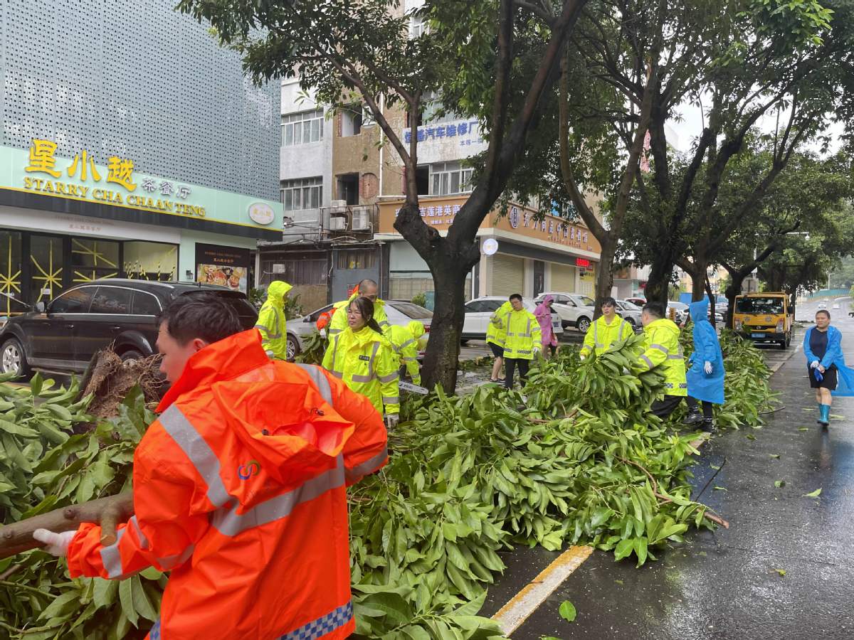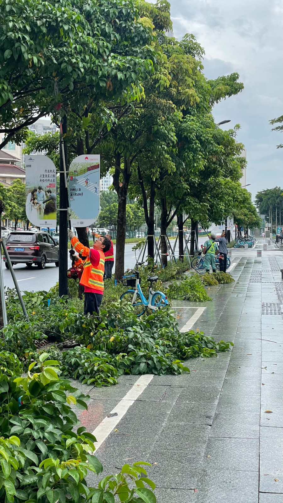 为深入学习贯彻习近平生态文明思想和《国务院办公厅关于科学绿化的指导意见》工作要求,深入推进绿美广东生态建设珠海实践,香洲区城市管理和综合执以“最快速度抢通道路,最大可能保活树木”为原则,高效统筹人员赶赴现场,科学研判树木处置方式,分类有序开展绿化抢险工作。