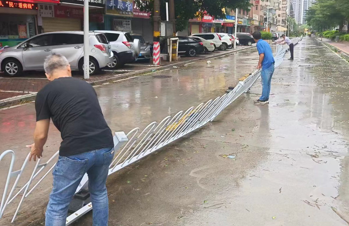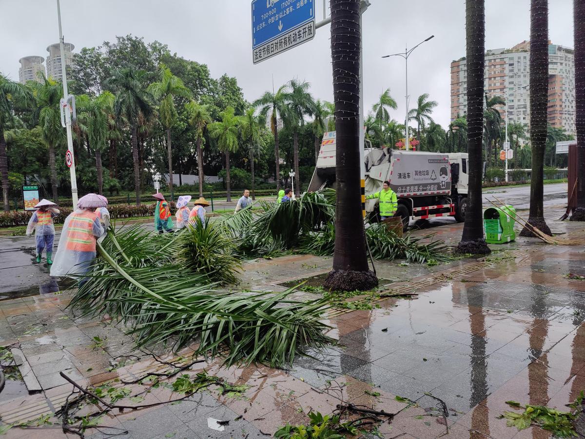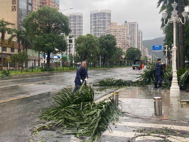 9月2日,香洲区城管系统出动了抢险救援人员1530人,各镇街参与环卫作业人员2081人,协调正方、正圆公司支援园林绿化修剪工作1118人次,安排共享单车企业出动213人次,对香洲区的园林绿化修剪、水浸点防汛整治、市政设施排查抢修、垃圾清理清运、大型户外广告设施等进行全面安全隐患立查立改。经过紧张的风险隐患摸排,城管领域各行业目前正以最快速度组织抢修、加固和整治。