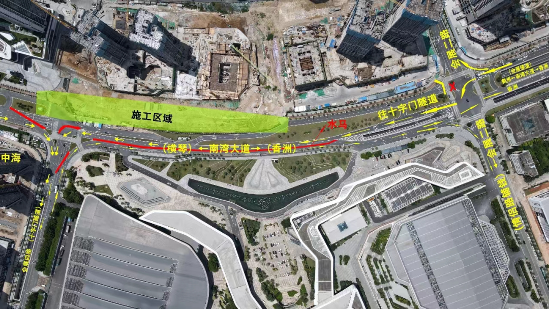 香洲往横琴粤澳深度合作区、鹤洲新区(筹)方向:(优先选择会展隧道通过横琴大桥)