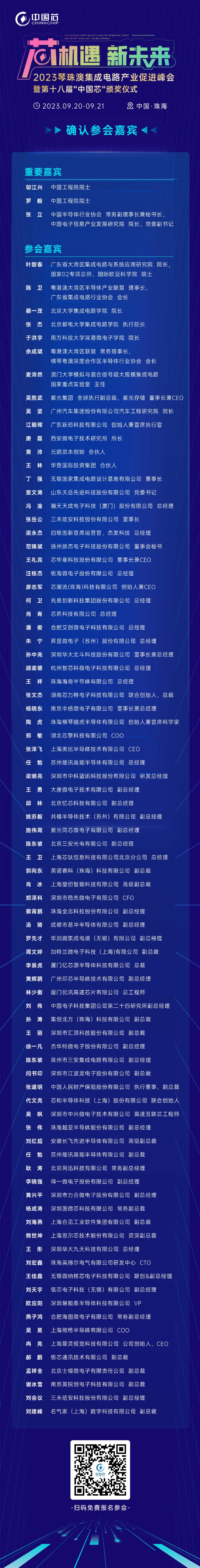工业和信息化部、广东省工业和信息化厅、珠海市人民政府、横琴粤澳深度合作区执委会等相关部门领导,邬江兴、罗毅、叶甜春等专家学者,以及企业家、投资人代表将出席大会,共商产业发展变局,共同探讨产业机遇与挑战。