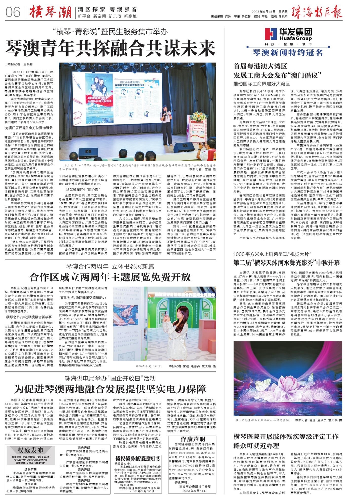 9月13日,以“琴澳心连心,暖心菁彩行”为主题的“横琴·菁彩说”暨民生服务集市活动在澳门工会联合总会青年活动中心举行,在横琴粤澳深度合作区成立两周年之际,琴澳青年携手唱响粤澳合作主旋律,共探融合、共谋未来。
