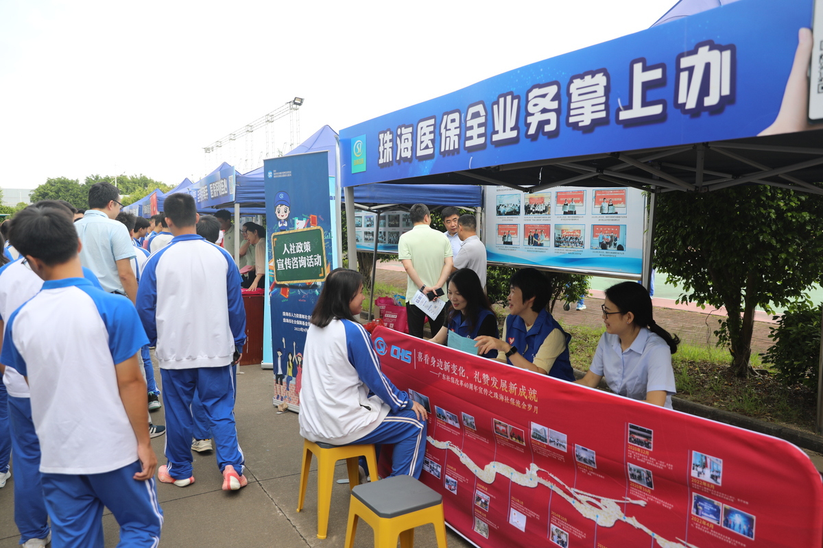 启动仪式上,同步开展了“基本医保宣传进校园,参保答疑面对面”活动,不少同学课后纷纷前来了解校园参保以及看病住院医保报销保障力度等问题。宣传活动现场,市医疗保障事业管理中心通过视频图文详细介绍了珠海社保掌上办、智能客服等便捷的医保经办模式,同时还在斗门区井岸镇南潮村设置医保政策咨询台,通过发放资料、集中展出宣传展板等形式,重点对基本医保参保、社保卡申办、医保报销、门诊共济、医保电子凭证使用等内容开展宣传,进一步提升学生、居民对基本医疗保险政策的知晓度,树牢主动参加医保缴费和健康风险防范意识。