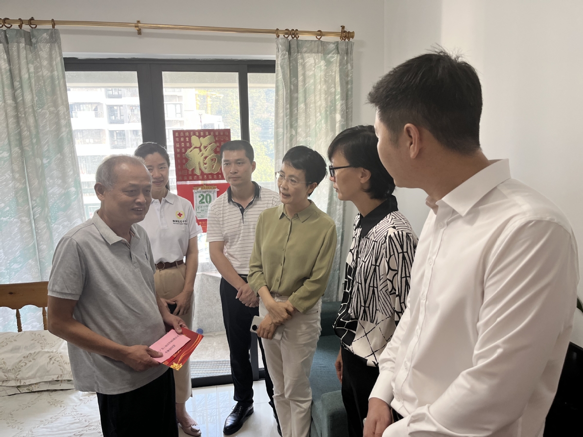 9月21日,珠海市红十字会开展2023年红十字博爱送万家中秋慰问活动,为困难群众等群体送去党和政府以及社会各界的关怀和温暖。当天,慰问小组一行先后来到香洲区南屏镇两位重大疾病救助者家中,和他们拉家常,了解他们的患病情况并询问他们的生活情况,向他们送上慰问金及应节的月饼、大米、油等慰问品,鼓励他们早日战胜病魔。
