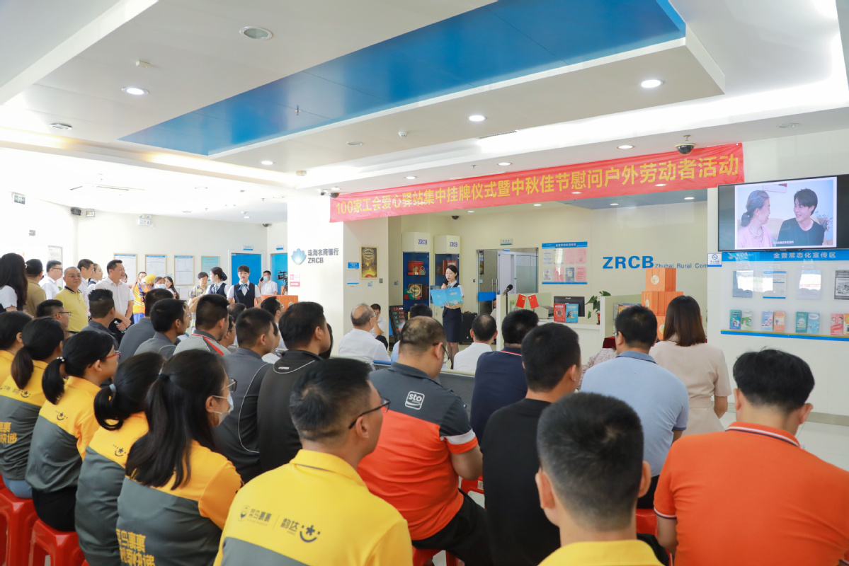 9月26日下午,珠海市总工会和珠海农商银行在珠海农商银行翠微支行工会爱心驿站举行100家户外劳动者工会爱心驿站集中挂牌仪式,标志着由珠海市总工会和珠海农商银行合作共建的户外劳动者工会爱心驿站正式启用,市总工会同时开展中秋慰问户外劳动者活动。