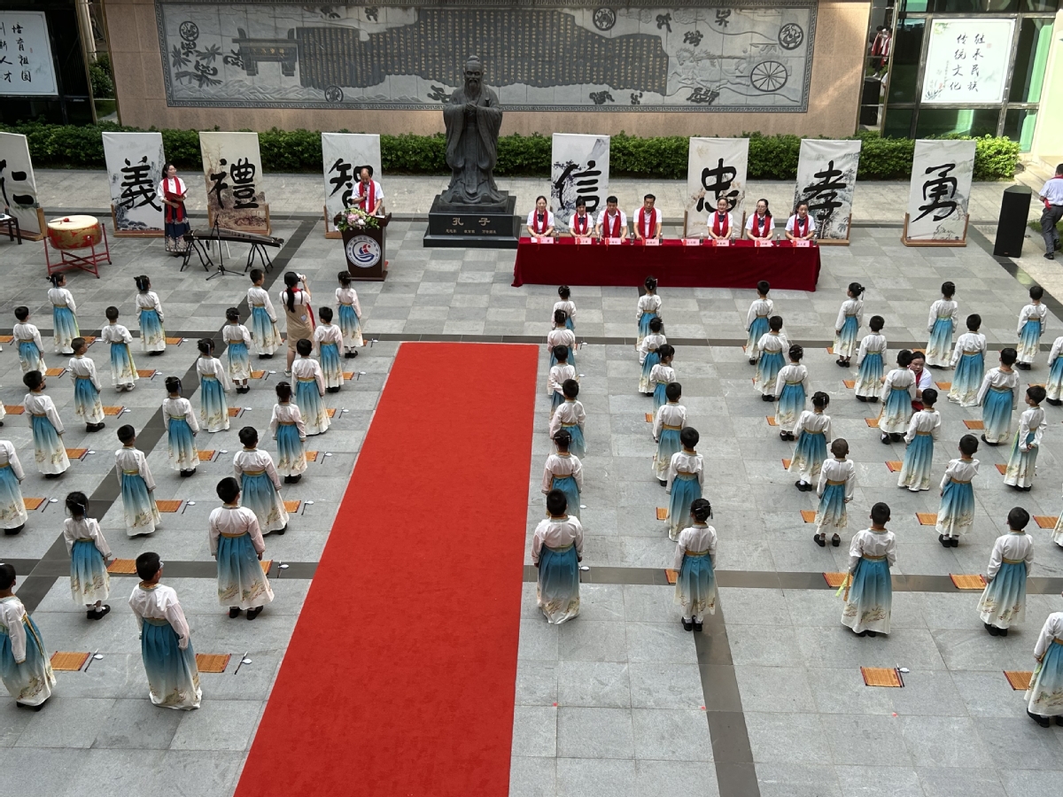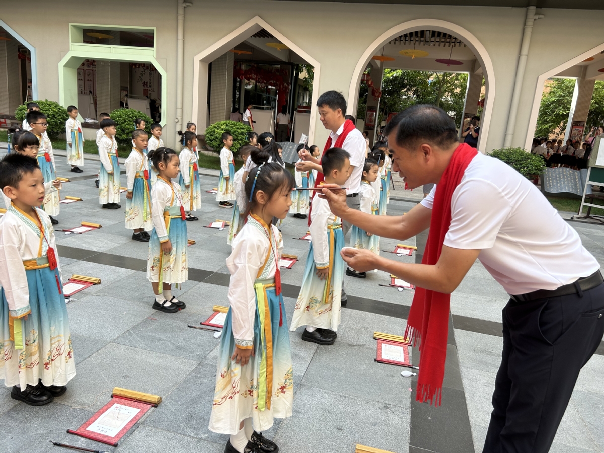 当天,该校还为一年级新生举行了开笔礼活动。