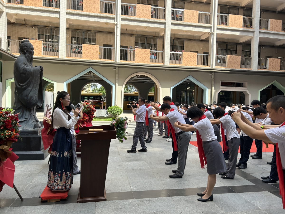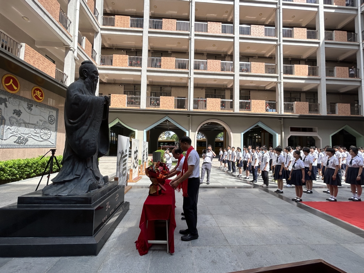 “学而时习之,不亦说乎?有朋自远方来,不亦乐乎?人不知而不愠,不亦君子乎……”今年9月28日是孔子诞辰2574年纪念日。当日,香洲区壮志学校在该校弘德园孔子塑像前举办祭拜孔子仪式,以继承优良传统、弘扬中华民族传统美德和优秀传统文化、营造浓厚校园文化氛围、构建和谐学校。