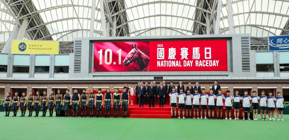香港沙田马场1日举办国庆赛马日活动,除了赛事本身,现场还有文娱表演和民间传统艺术展,节日气氛浓厚。