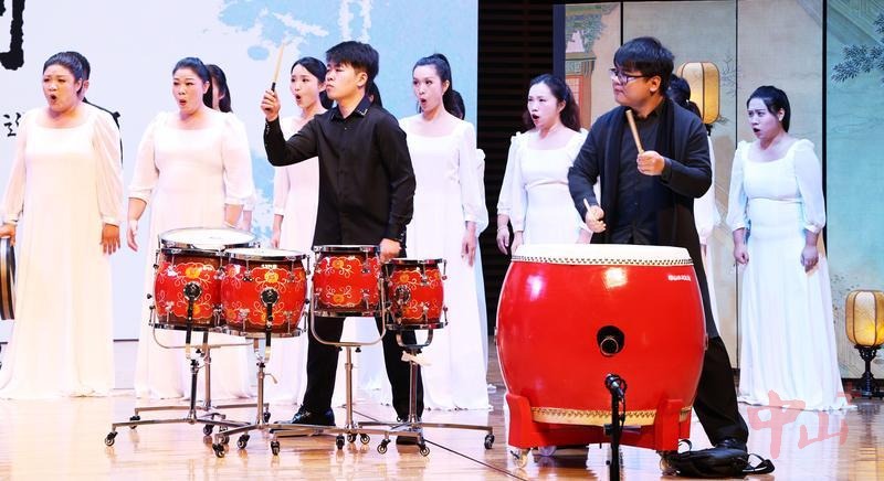 《观沧海》作为音乐会开场曲目,加入打击乐伴奏,展现丰富多元的舞台艺术效果。中山合唱团演唱的五首选自《诗经》的原创艺术歌曲也是本场音乐会的特色之一,充分展现了中山音乐创作和表演的实力。