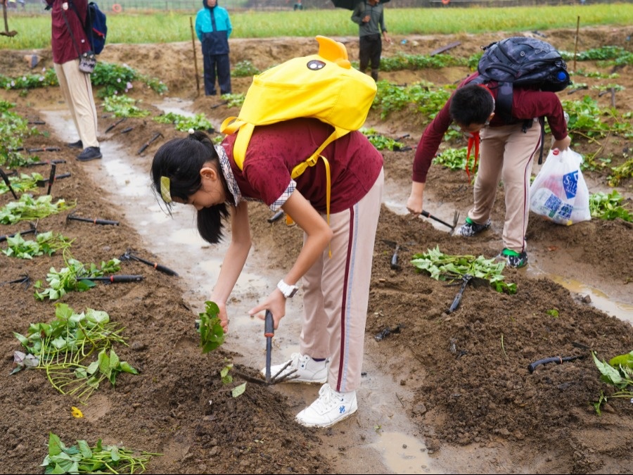 在农田里,种下一株株番薯叶、体验农耕劳作