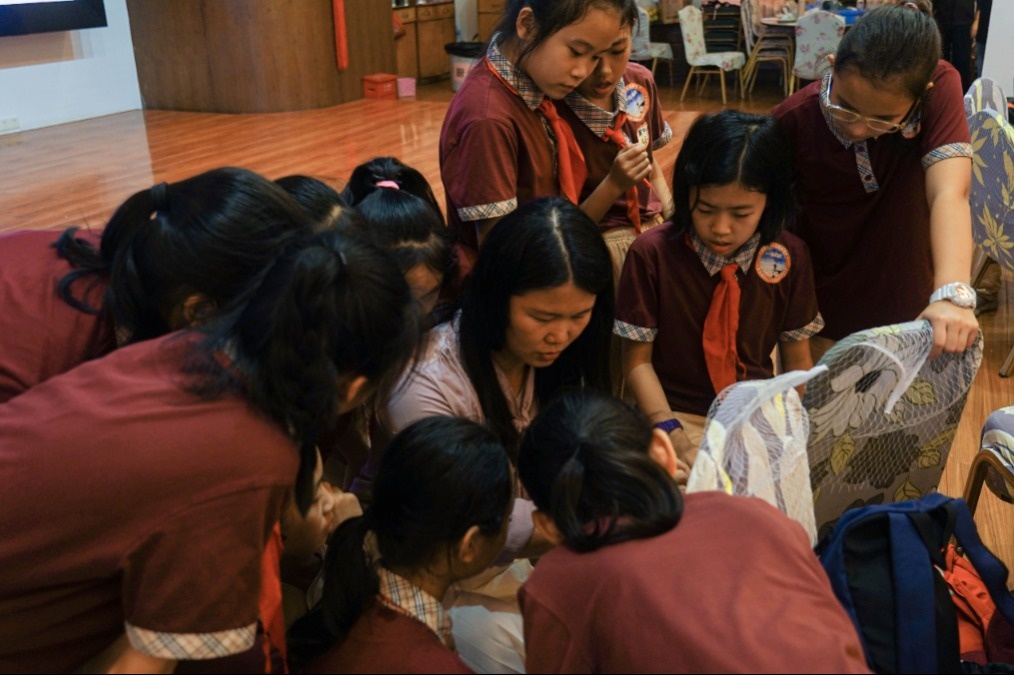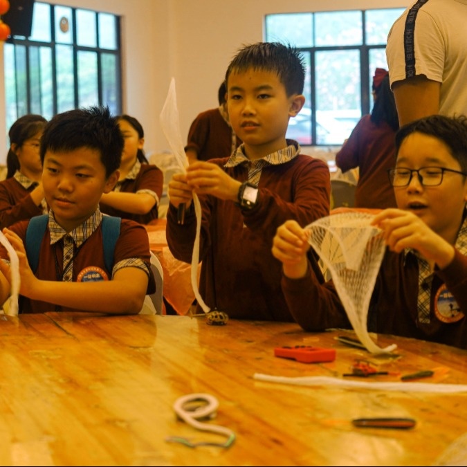 点评:织网是一件技术活,需要同学们耐心细心的完成它。同学们也通过这样生动的研学课堂,体会到了团队合作的重要性。