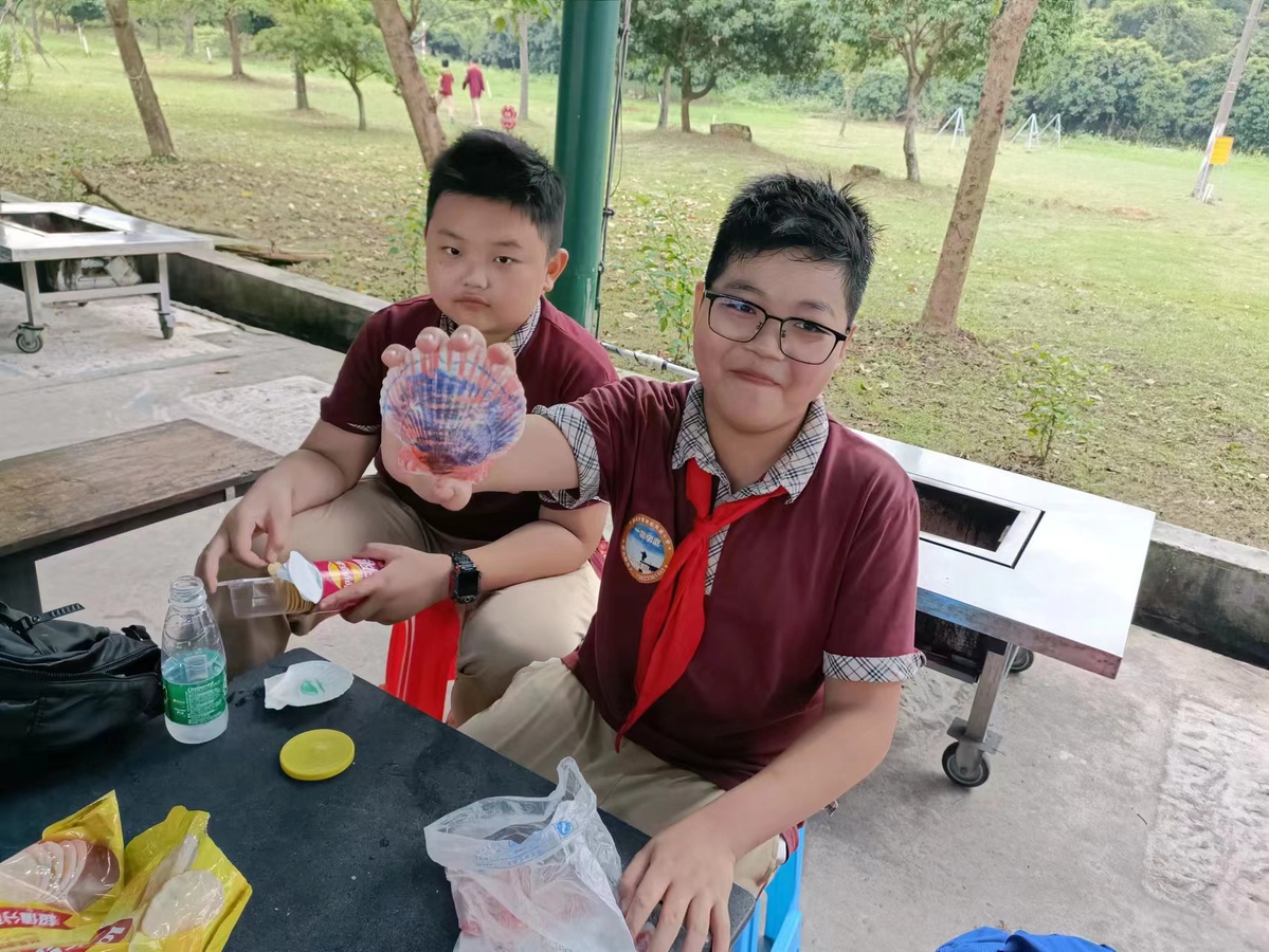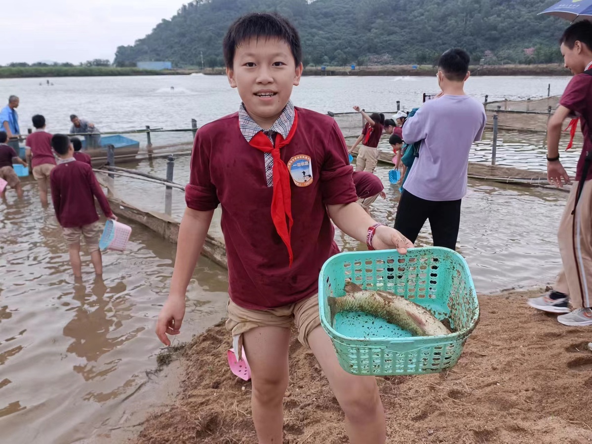 “这次的研学活动很开心,走出课本,走进自然的生态课堂,学到了很多在课本里学不到的有趣的事情。用自己织的网下海抓鱼,不仅增强了我的动手能力,也提升了和同学们团队合作的精神。”