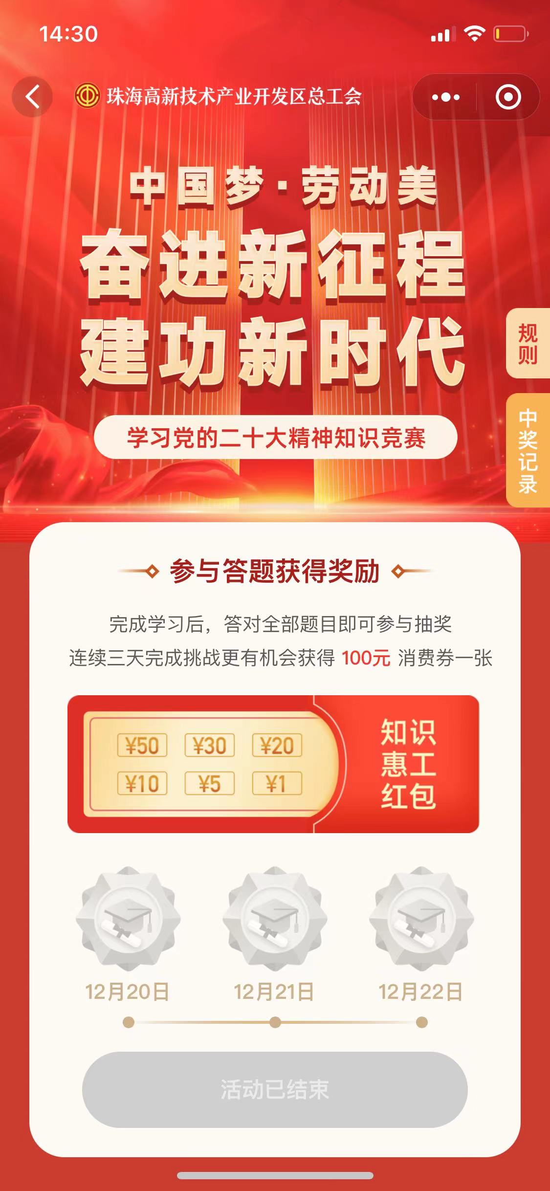 “中国梦·劳动美⸺奋进新征程 建功新时代”珠海职工学习宣传贯彻党的二十大精神线上答题活动(珠海市总工会)