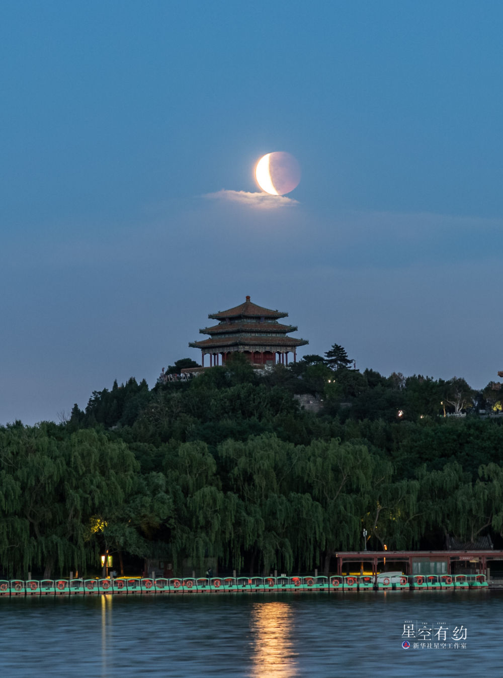 月偏食按发生时间的先后顺序主要分为初亏、食甚、复圆三个阶段。本次月偏食的初亏时间为29日3时34分,食甚时间为4时14分,复圆时间为4时54分。