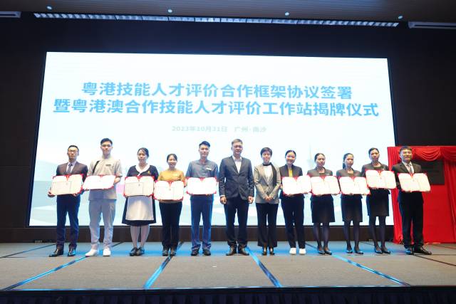 10月31日,广东省人力资源和社会保障厅与香港特别行政区政府及澳门特别行政区政府相关部门在广州市南沙区联合举办粤港技能人才评价合作框架协议签署曁粤港澳合作技能人才评价工作站揭牌仪式。