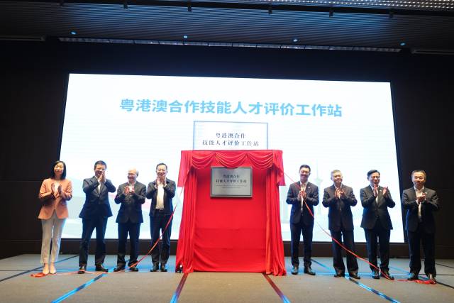在仪式上,粤港澳合作技能人才评价工作站正式揭牌,澳门特别行政区政府劳工事务局局长黄志雄对此高度评价。他表示,粤港澳合作技能人才评价工作站是粤港澳三地职业技能评价标准的对接点及合作项目的孵化点,是粤港澳“一试多证”合作项目有效落地的重要平台。