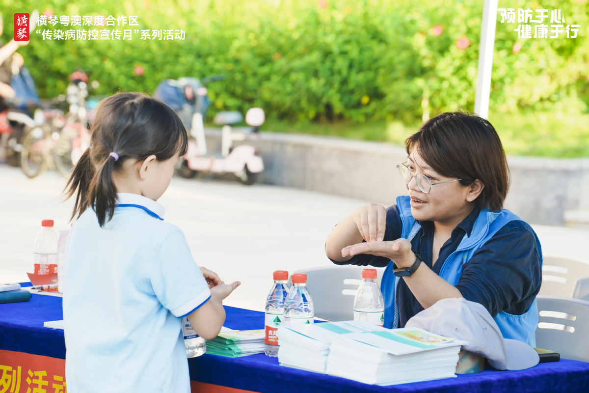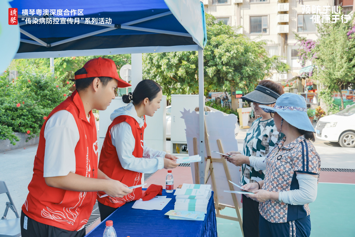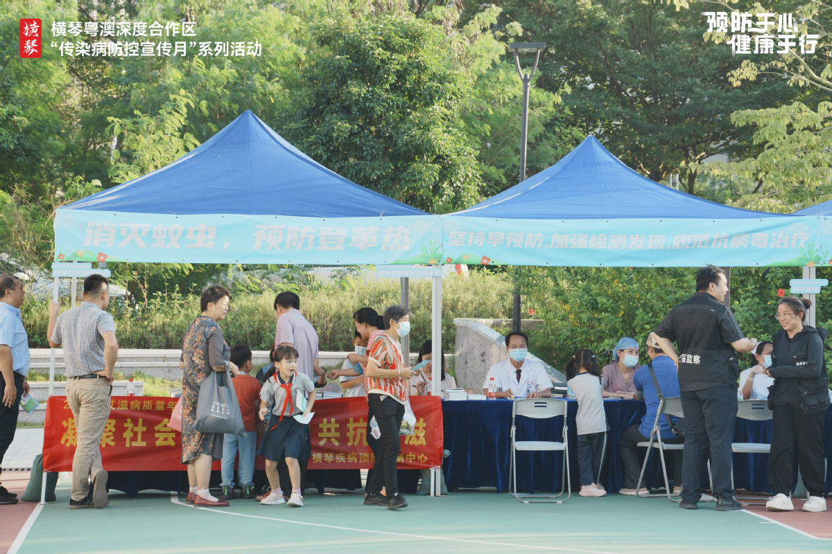 横琴疾控中心、横琴粤澳深度合作区公安局、横琴粤澳深度合作区商事服务局针对传染病进行现场宣传指导,珠海市人民医院横琴医院、横琴社区卫生服务中心医生们还给现场居民进行义诊服务。